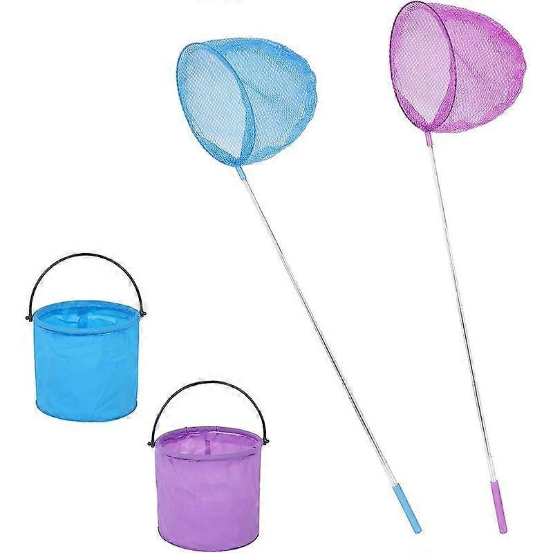 Luxora 4 Pack Butterfly Nets - Telescopic Fishing Nets and Folding Bucket for Kids, Perfect for Insect Catching and Pond Dipping