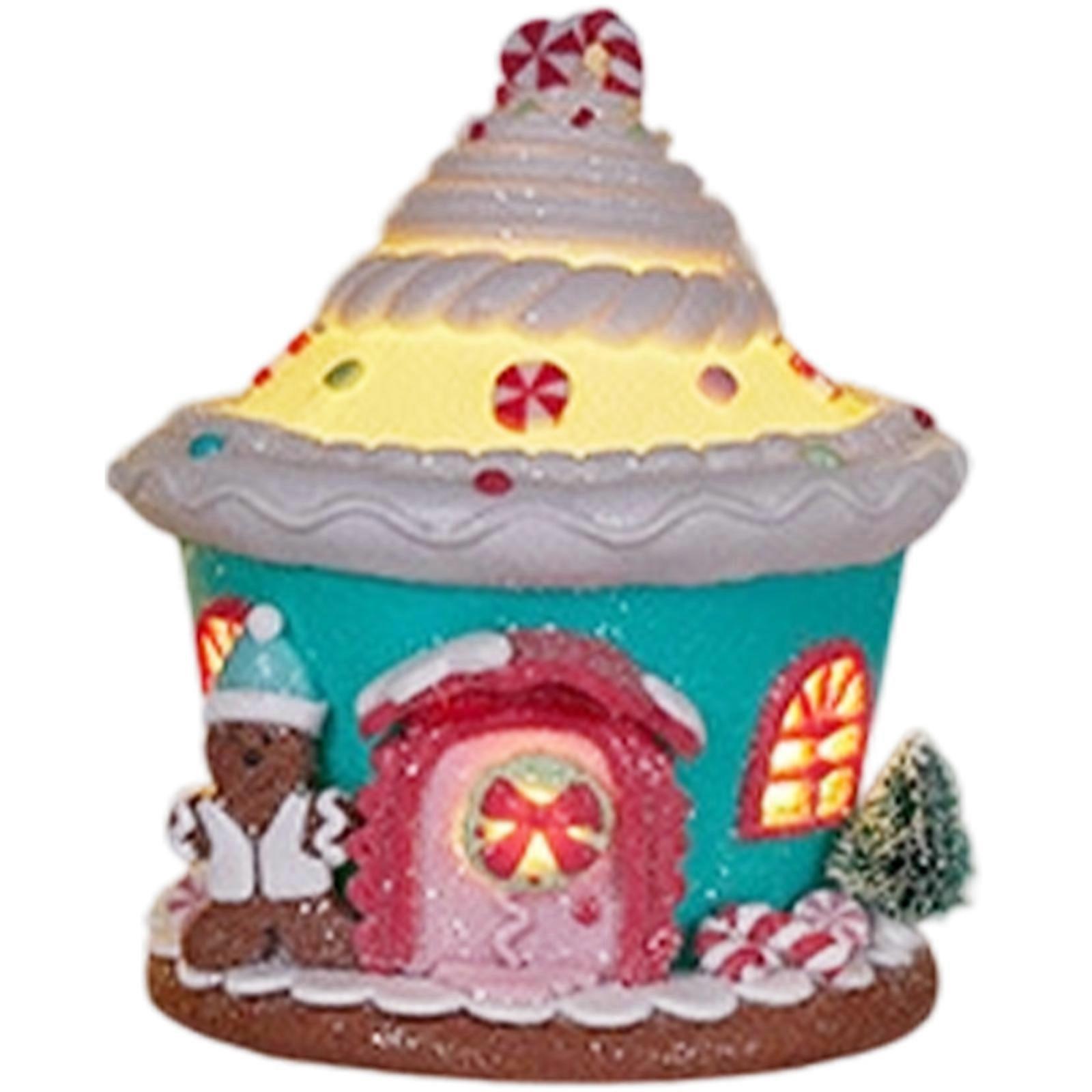 Glowing Ceramic Simulation Christmas House Decoration With LED Lights Battery Powered Handmade Holiday Gift Multicolor