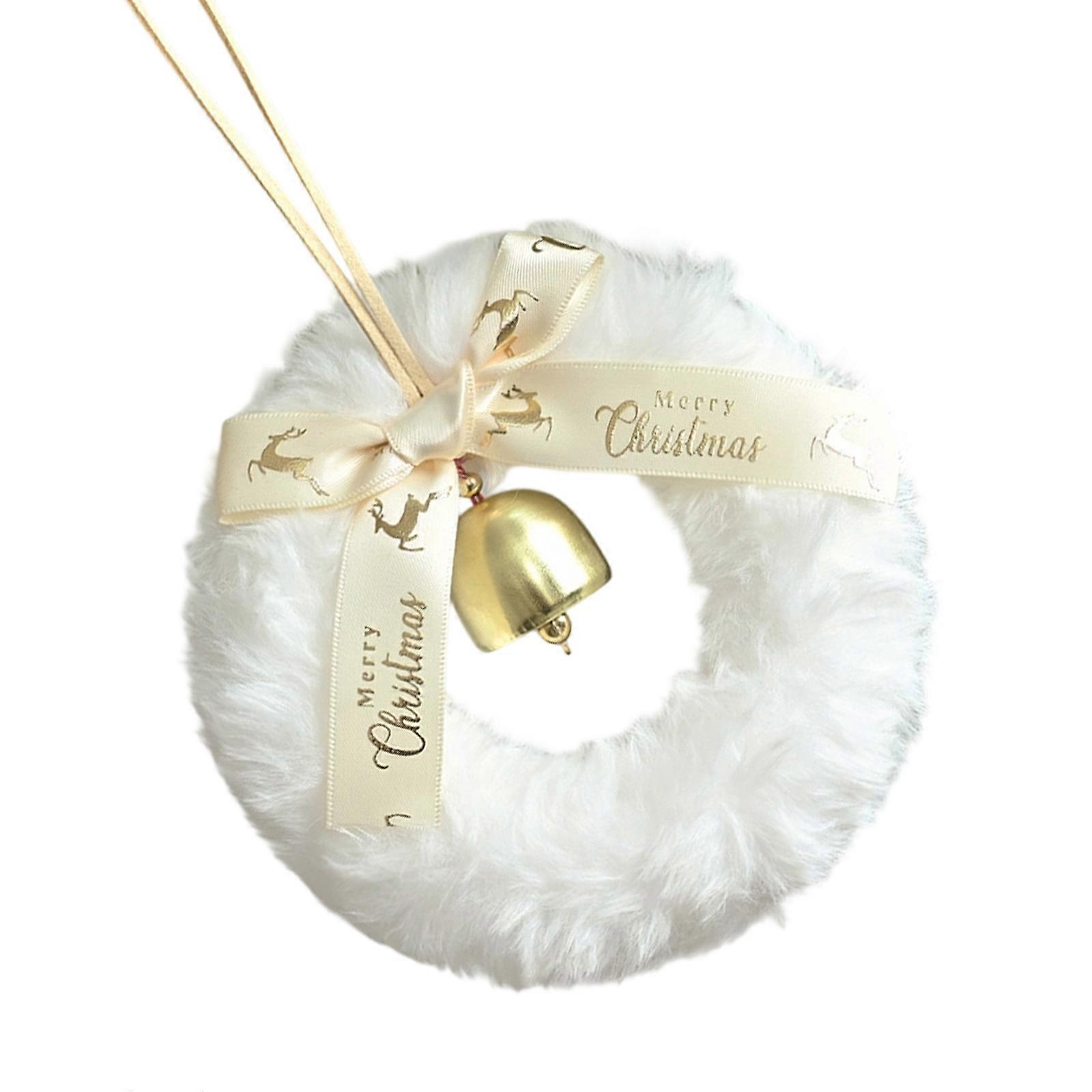 Plush Furry Wreath with Bell Ribbons Embellishments Christmas Tree Decoration For Mantels Window Doorway Staircase White