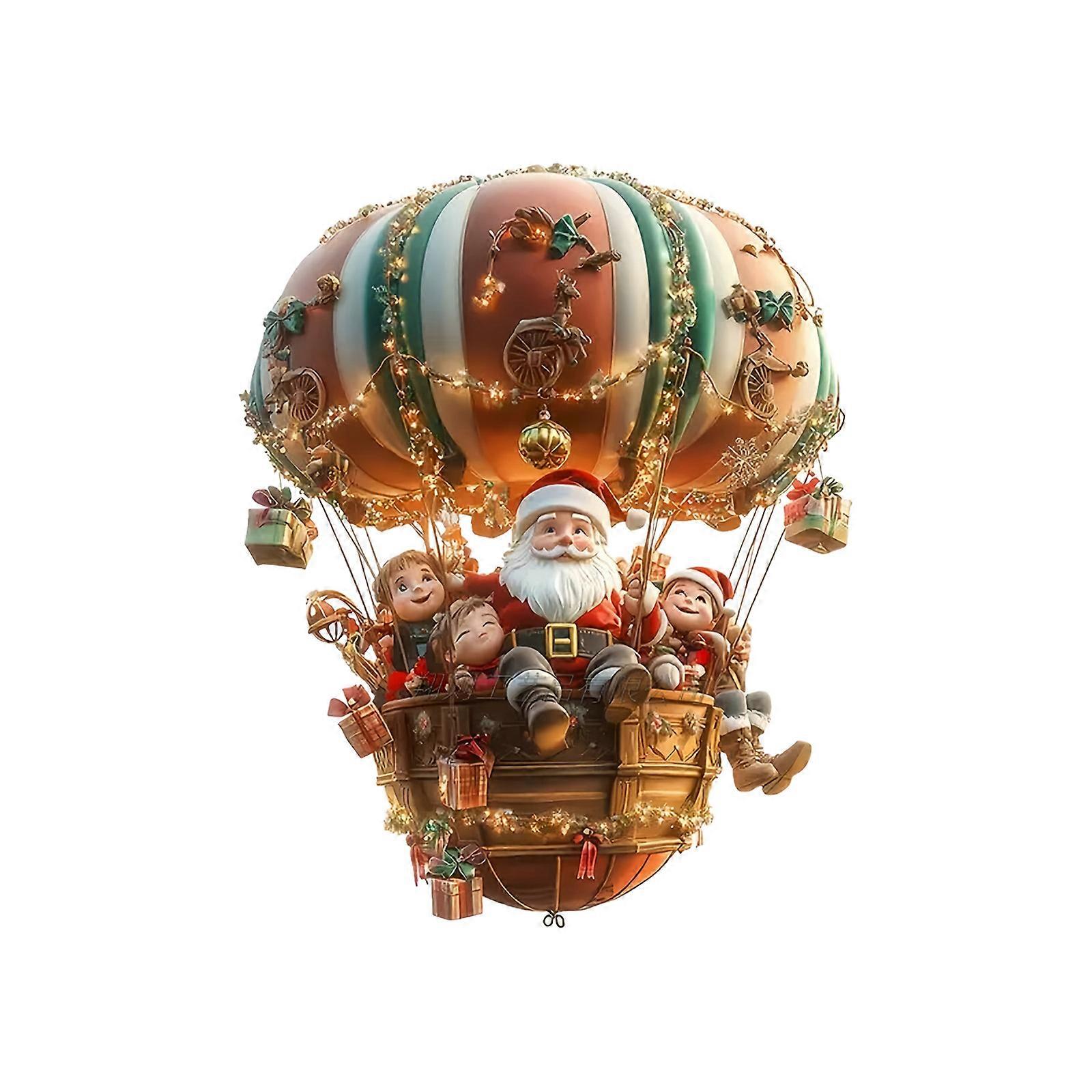 Holiday Tree Decoration Cartoon Santa in Hot Air Balloon Shape Pendant Acrylic Ornament for Tree Door Window S
