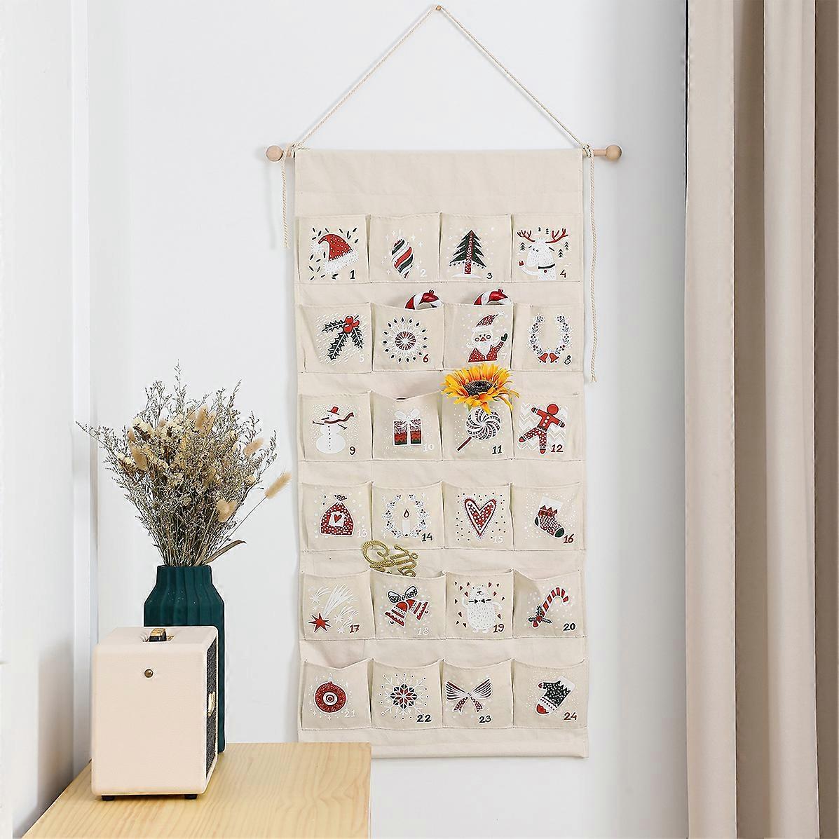24 Pockets Christmas Ornaments Calendar New Design Hanging Tree Printed Canvas Advent Calendar for Kids Grifts Home Wall Calenda