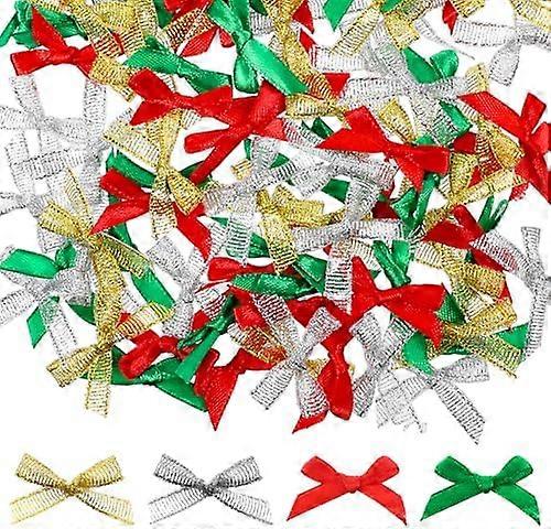 100 PCS Christmas Tiny Bows, Christmas Tree Bows Decor, Mini Gift Wrapping Ribbons Bow Ornaments, Bows for Crafts Home Decor Tree Decor Gifts Wrapping