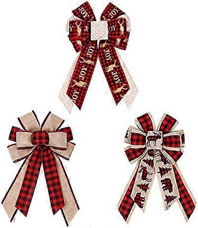 3Pcs Large Buffalo Plaid Bows Christmas Wreath Bows 15 x 9in Bows Christmas Tree Bows Decoration Burlap Bows Holiday Christmas Wreaths Bows Red Christ