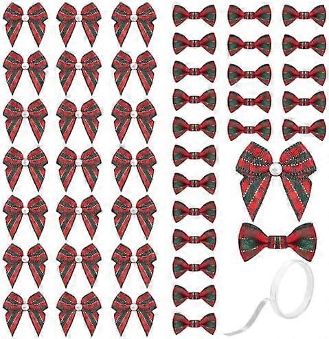 48PCS Green Red Bows for Christmas Tree Mini Tartan Christmas Bows in 2 Styles, Stick On Present Bow with Tape Included, Small Bulk Pack For Gift Wrap