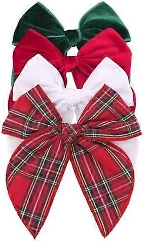 Velvet Plaid Bow Hair Clips and Accessories for Little Girls and Baby Moms - Red Green White Tartan Christmas Fable (4 Pack)