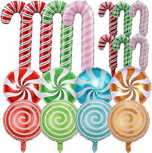 18 Pcs Candy Cane Balloons, Christmas Foil Sweet Inflatable Lollipop Balloons for Christmas Balloon Arch Party Decorations