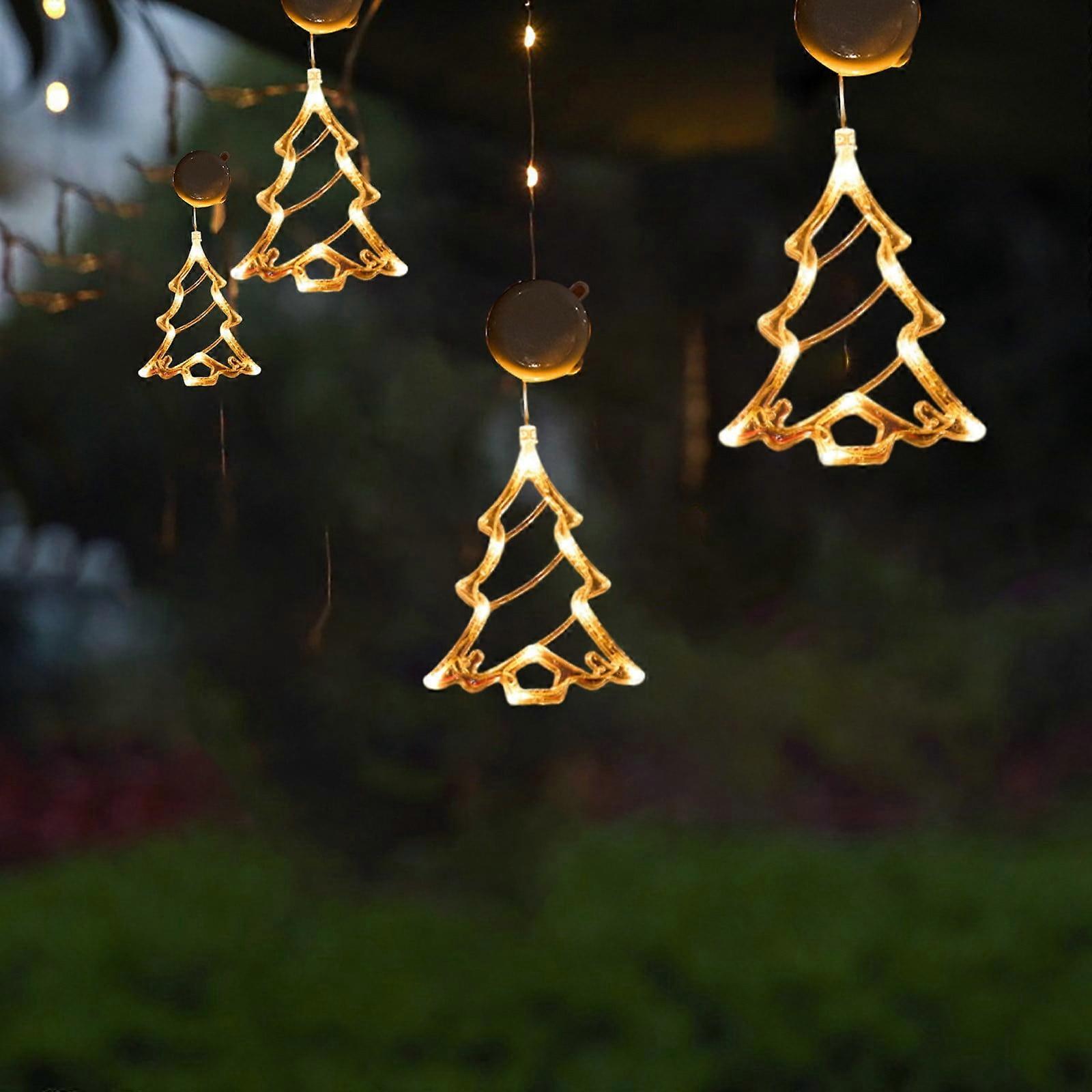 Christmas LED Light Decoration with Suction Cup Hook, Snowflake Snowman Tree, Battery Powered Warm White, compatible with indoor bedroom window
