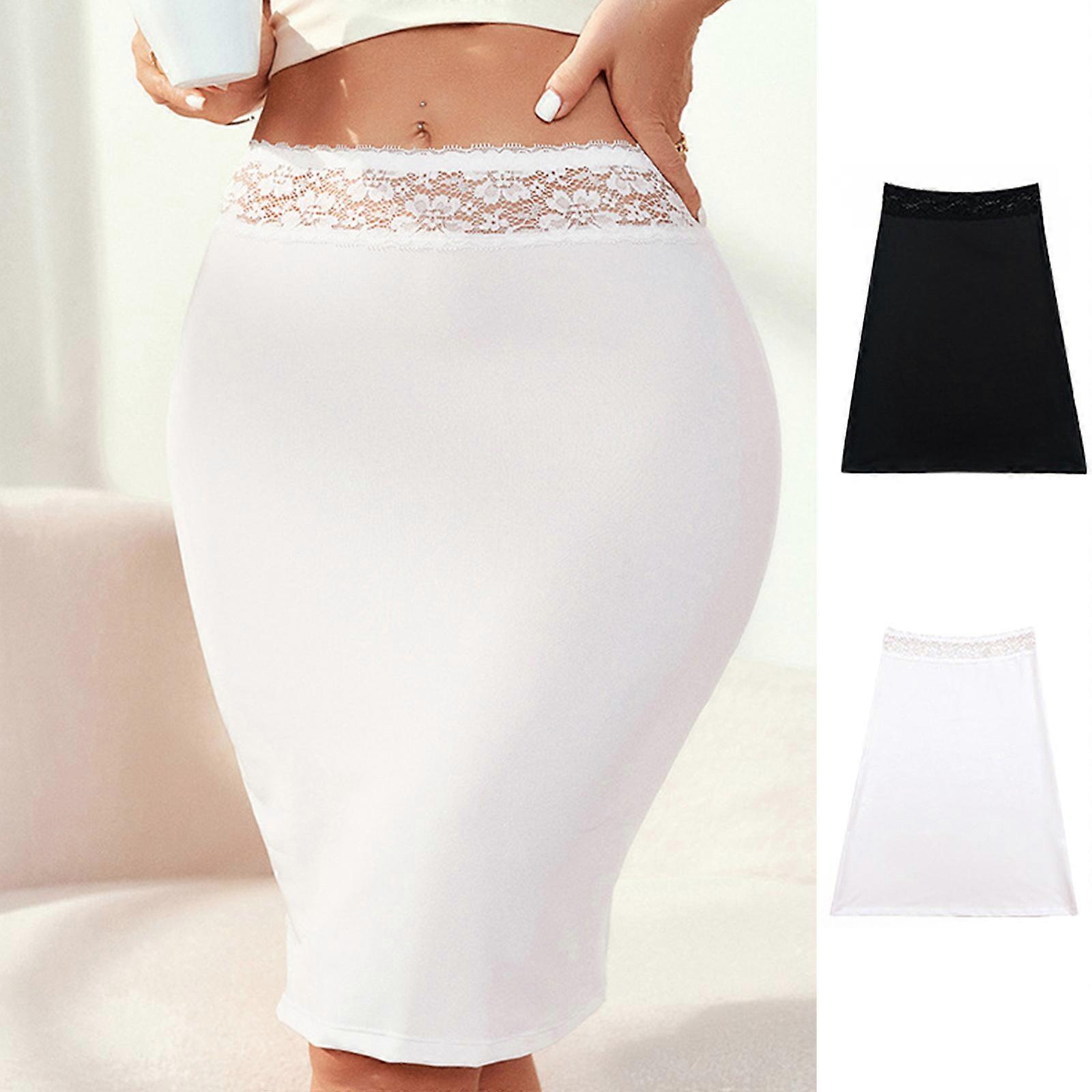 Fashionable Women's Slip Skirt in Solid Color Floral Lace Waistband Knee Length Underskirt Underwear for Under Dresses XL White