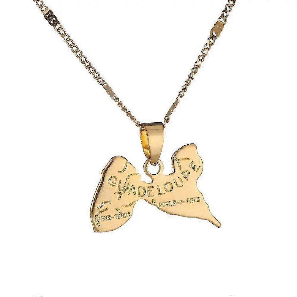 Gold Guadeloupe Map Pendant Necklace – France Island Charm Jewelry for Women