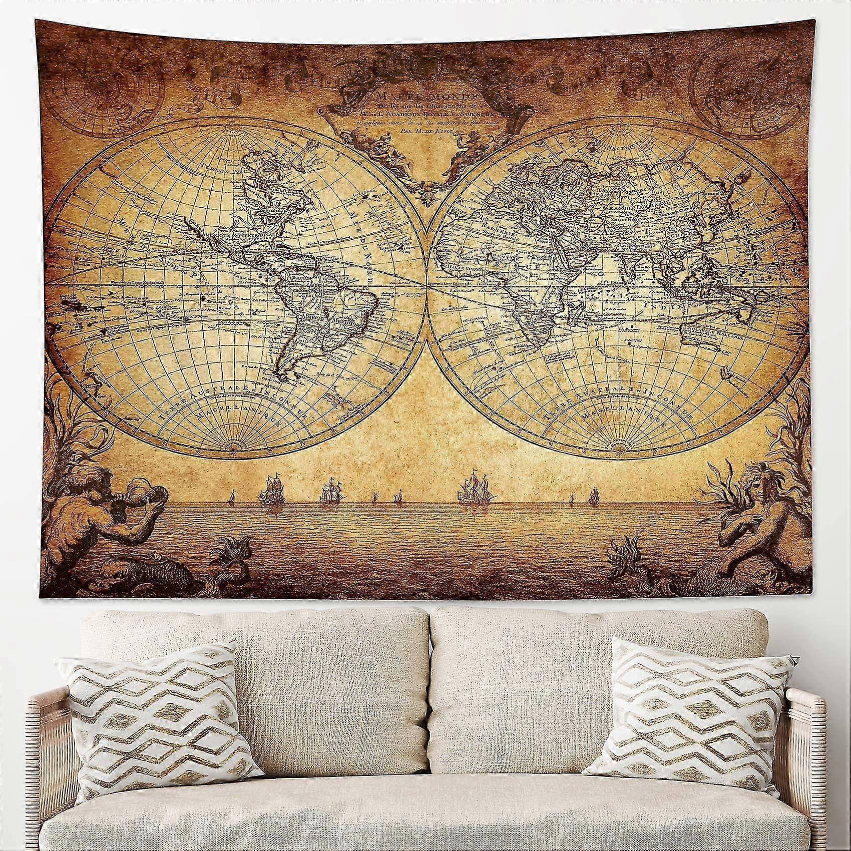 Retro Nautical Treasure Map Wall Hanging for Living Room or Bedroom 60x40 Inches