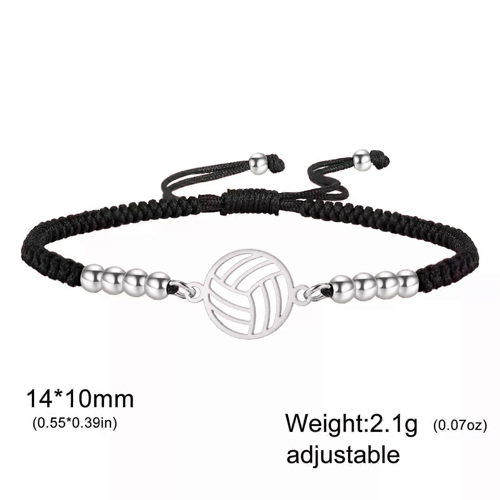 Geometric Volleyball Bracelet for Women Volleyball Fans Adjustable Hand Rope Chain Stainless Steel Fashion Couple Sports Jewelry