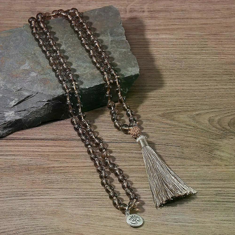 8mm Tea Crystal Bead Knotted 108 Mala Necklace Meditation Prayer Jewelry for Men and Women _x000D_ _x000D_