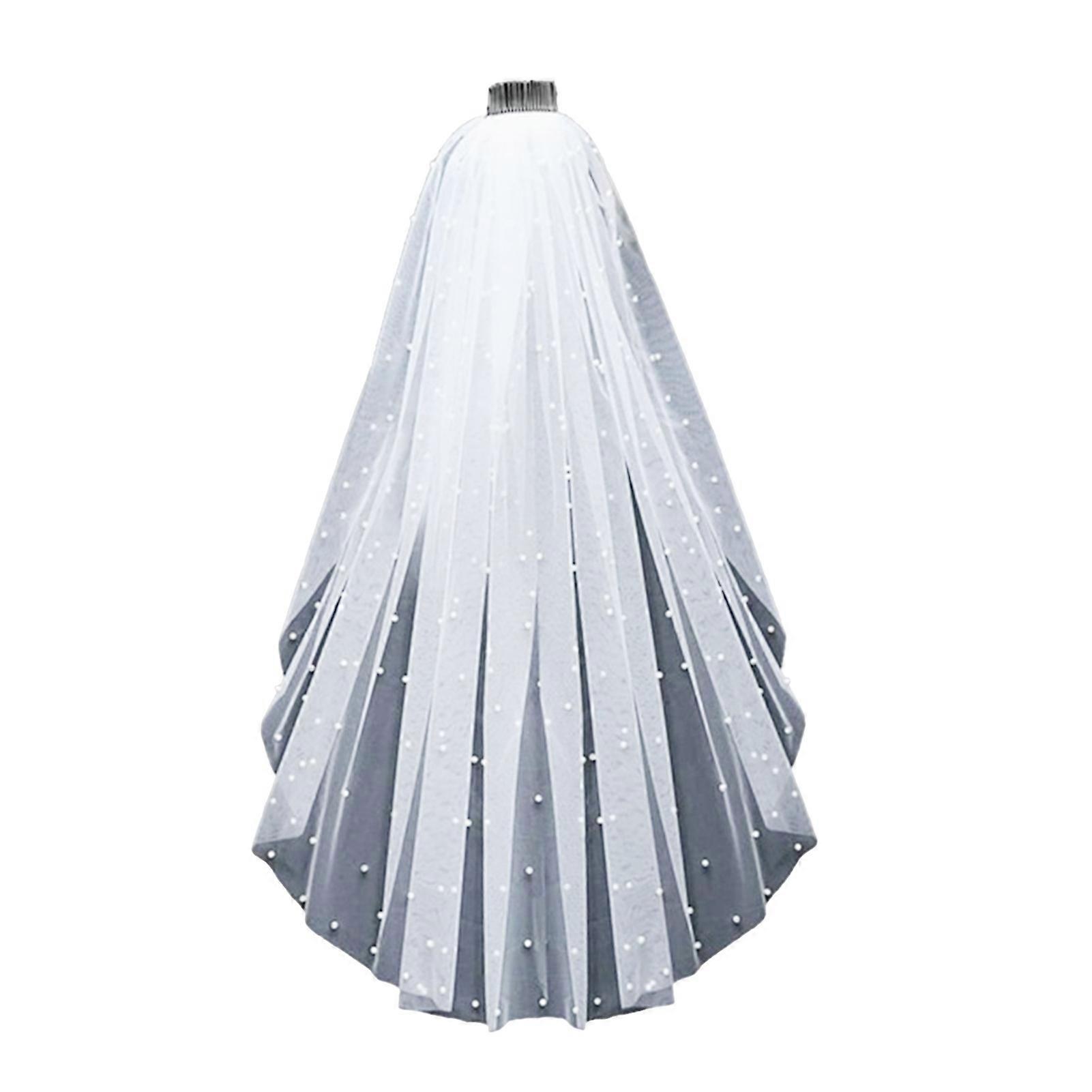 Bridal Veil with Faux Pearls Embellishment Women Lightweight Breathable Tulle Bride Veil Lightweight Short Bridal Veil
