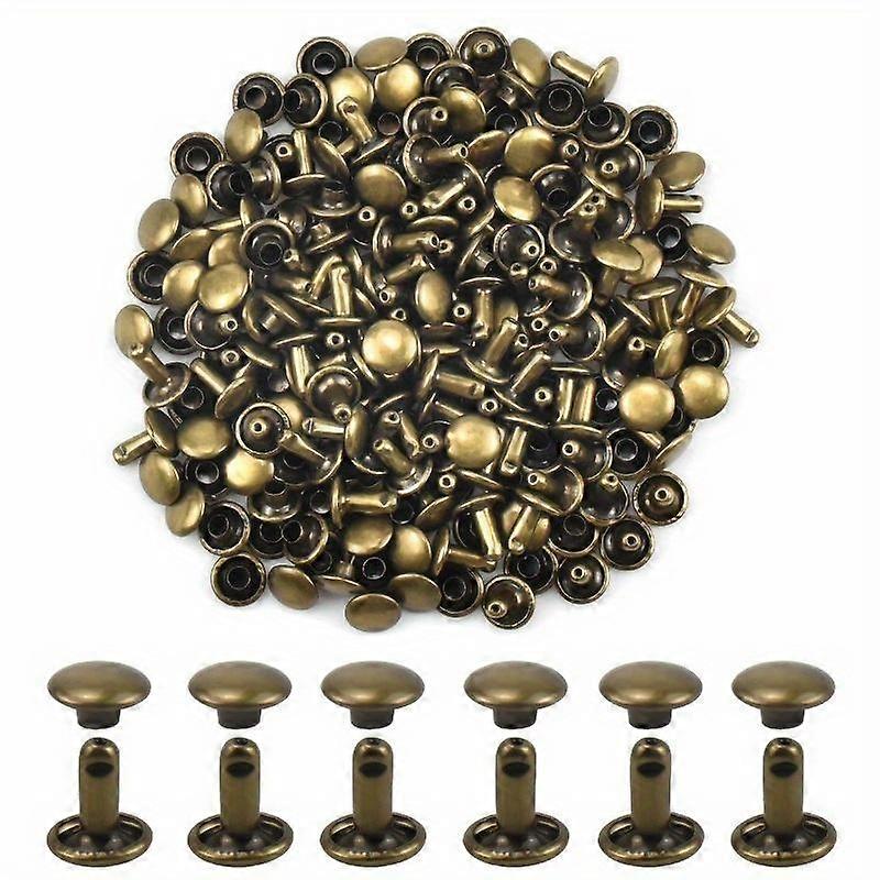 100pcs Antique Bronze Copper Double Cap Faux Leather Rivets - Double-Sided Metal Studs, 8*8mmRound Flat Snap Button Fasteners for DIY Faux L