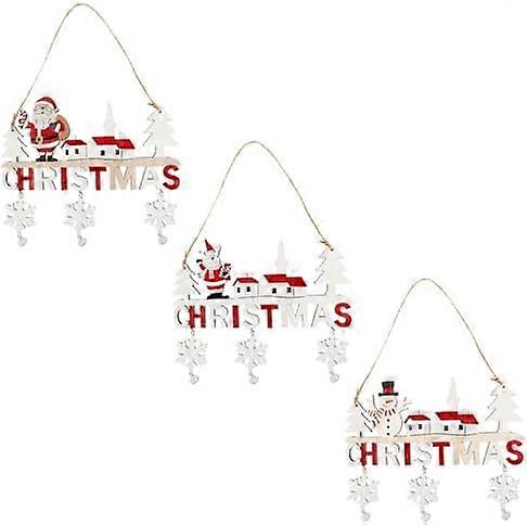 3pcs Merry Christmas Sign Set, Wooden Christmas Decorations, Santa Ornaments, Hanging Sign for Outdoor Indoor Wall and Christmas Tree