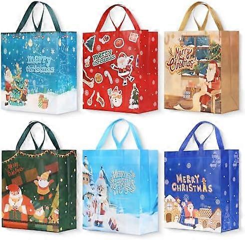 Large Christmas Tote Bags 6Pcs , Non-Woven Large Christmas Bags Xmas Gifts Bag, Waterproof Reusable Big Xmas Bags for Present Wrapping, Holiday Party