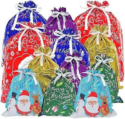 zidviyi 34Pcs Christmas Drawstring Gift Bags, Large Medium Small Foil Christmas Wrapping Bags Multipack,4 Sizes & 6 Designs Xmas Gift Bags for Present