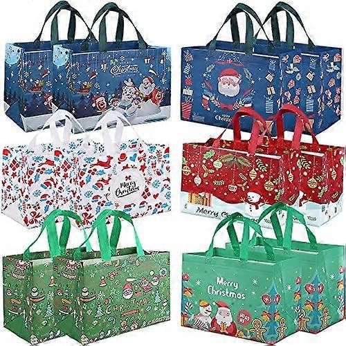 12pcs Large Christmas Tote Bags with Handle, Reusable Gift Bags Shopping Bag Wrapping Bag for Xmas Holiday Party Decoration613