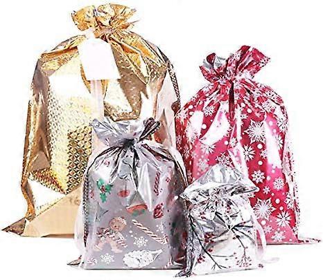 40 Pack Christmas Bags,Santa Wrapping Bag in 4 Sizes and 4 Designs with Inserted Drawstring Ribbons and Tags for Wrapping Holiday609