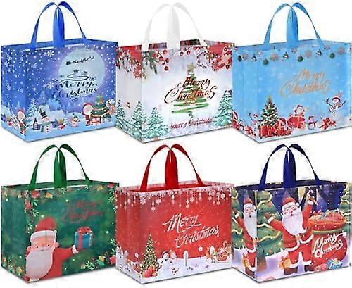 AhfuLife Extra Large Christmas Bags for Gift, 6pcs Christmas Tote Bags with Handles for Xmas Gift, Reusable Multipack Non-woven Xmas Shopping Bag, Par
