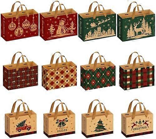 Christmas Gifts Bags 12 pcs,Xmas Paper Bags Multipack with Large Medium Small Size,Reusable Tartan Kraft Christmas Goody Bags with Handles for Present