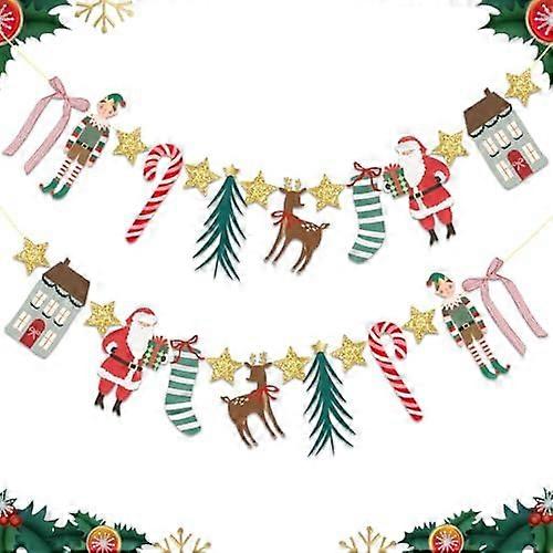 Christmas Banners, Hanging Christmas Bunting with Santa,Reindeer,Tree and House Hanging Xmas Decorations Indoor for Party Home Wall Fireplace Window C