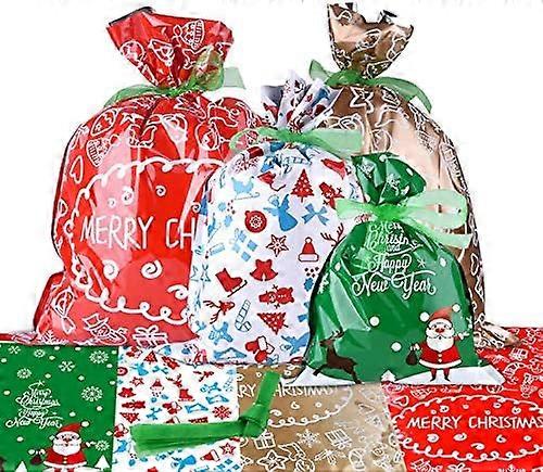MIAHART 10 Pack Xmas Gift Bags Large Size Gift Wrapping Assorted Styles Present Gift Bags with Ribbon Ties for Xmas Wrap Gifts811