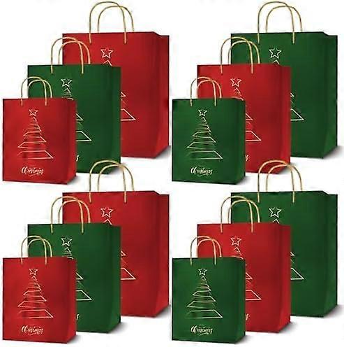 easykart labels 12 Christmas Bags, Red & Green Metallic & Texture Finish with Golden& Spot Gloss Xmas Tree, Assorted Sizes With Handle (4 Extra Large