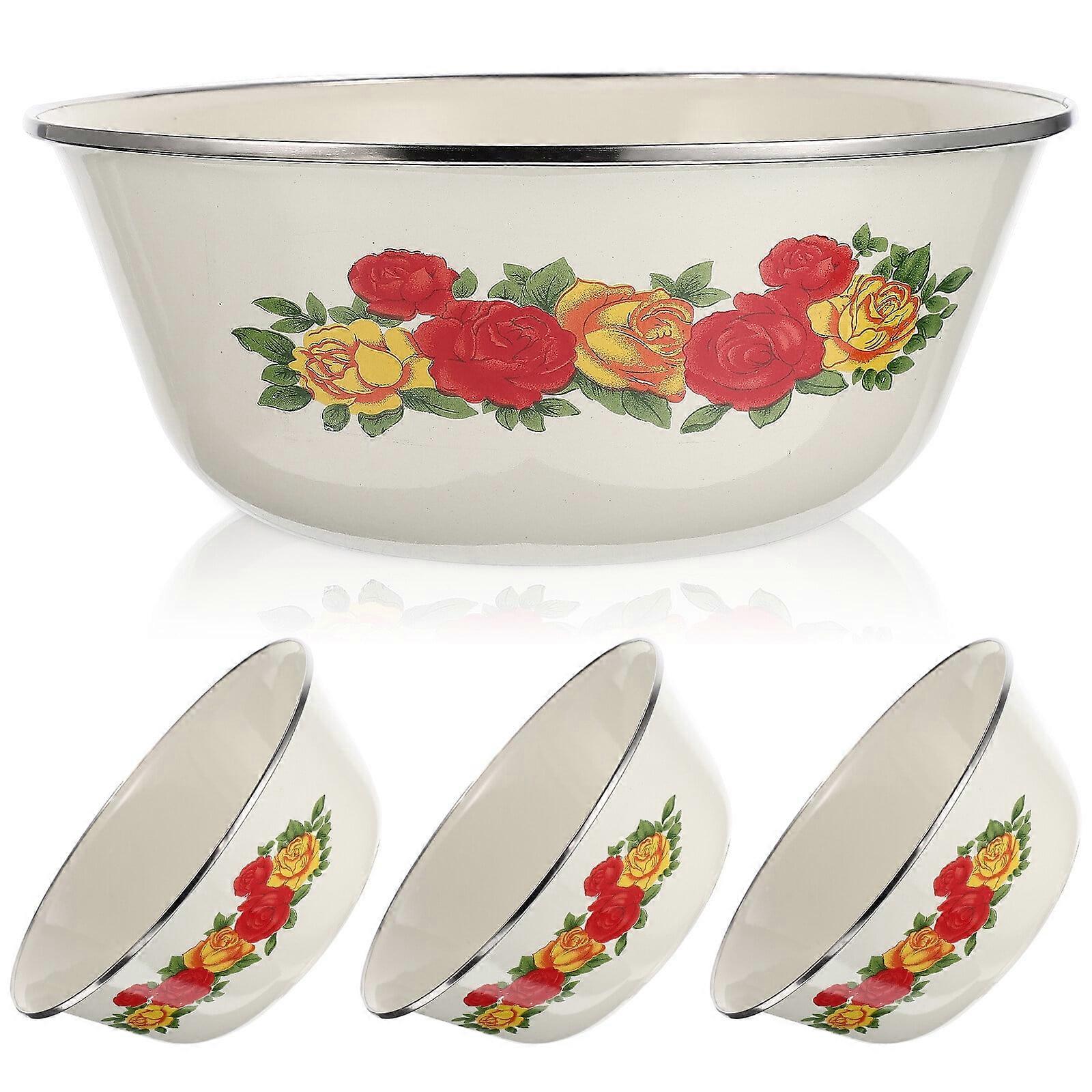 4pcs Retro Enamel Soup Bowl Multi-functional Enamel Basin Vintage Enamelware