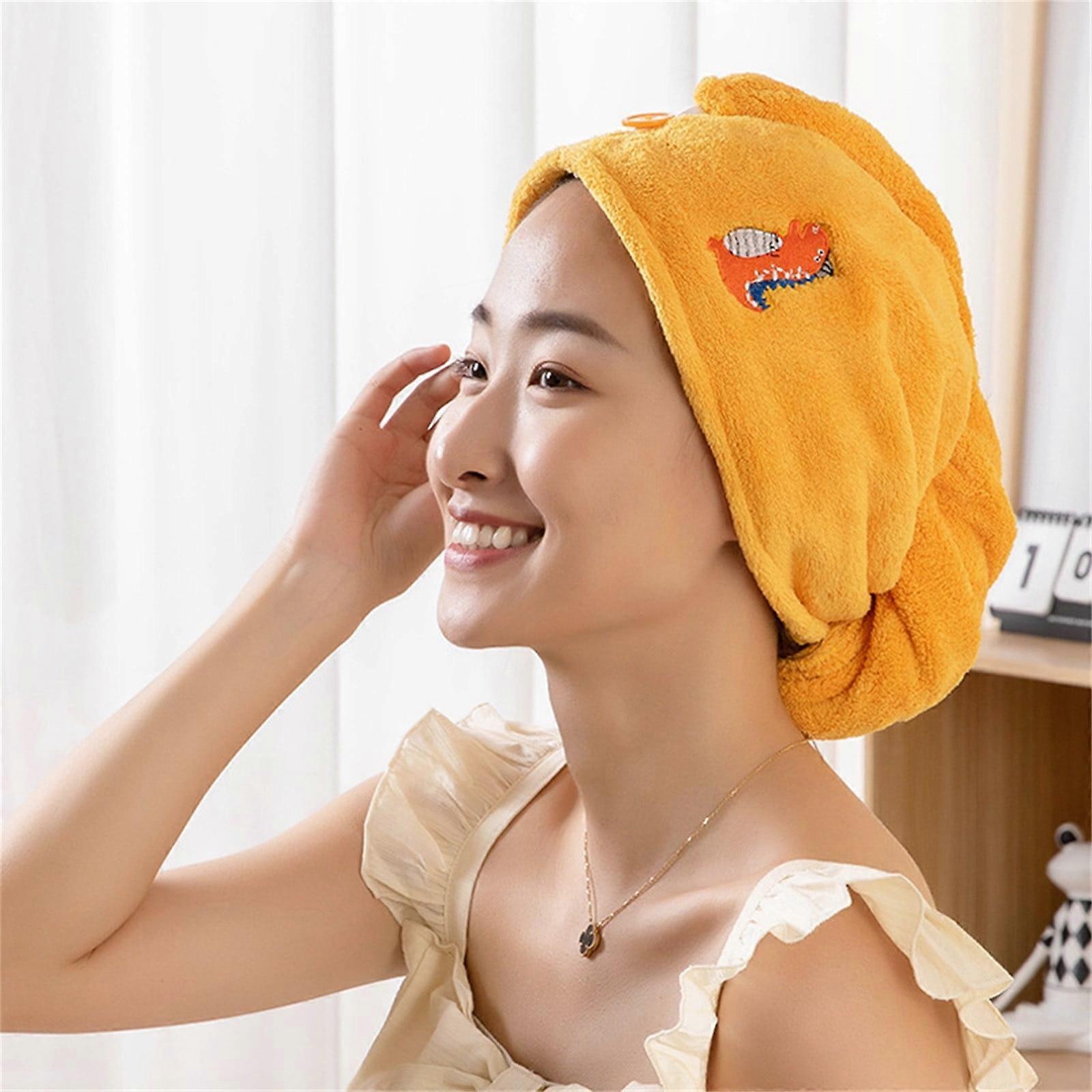RnemiTe-amo Deals!Hair Towel Coral Velvet Cute Pattern Embroidery Dry Hair Cap Bath Cap Super Absorbent Adult Hair Fine And Soft
