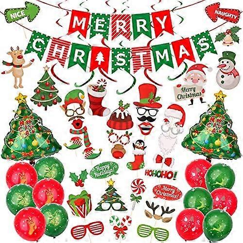 Trimming Shop Christmas Ceiling Decoration, Santa Claus Snowman Jingle Bell Latex Balloons Set, Foil Balloons, Photobooth Selfie Props, New Year Indoo