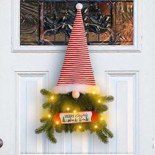 Christmas Gnome Wreath, Artificial Gnome Wreath With Lights, Gnome Christmas Front Door Decorations With Lights, Christmas Hangings Swedish Gnome Wrea