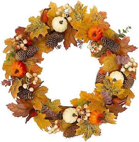 85019 45cm Autumn Wreath Decoration/Front Door Seasonal Home Décor/Artificial Pumpkins, Pinecones, Leaves and Berries