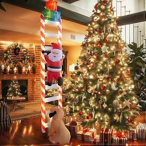 9 FT Hanging Christmas Inflatables Decorations with Led Light, Santa Claus Chased by A Dog Climbing Ladder, Funny Blow up Christmas Ornaments, Xmas Ho