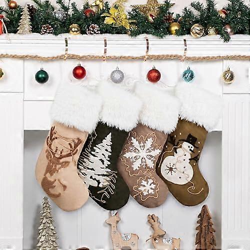 Christmas Stockings, 20 inch Soft Velvet Large Xmas Stocking for Family Traditional Hanging Ornament Fireplace Christmas Decorations, Brown Suede, 4 P