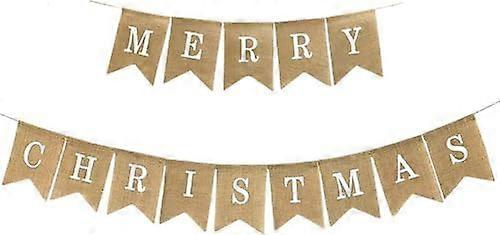 Merry Christmas Banner, Christmas Burlap Banner Pre-Assembled Xmas Bunting Garland Celebration Hanging Decorations for Christmas Party Supplies Home D