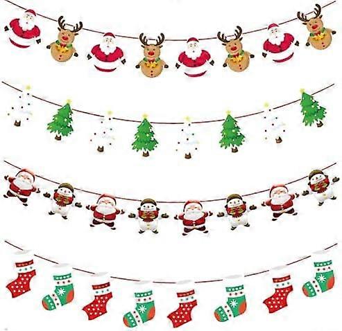 4 Pcs Christmas Banner, Christmas Decorations Hanging Bunting Garland, Hanging Paper bunting Banners, Santa Snowman Reindeer Bunting Flags for Xmas Pa