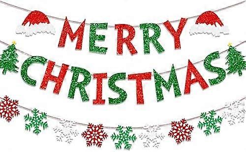 2pcs Merry Christmas Banner Glitter Snowflake Xmas Banners Hanging Paper Banners Garland Hanging Christmas Decorations for Home