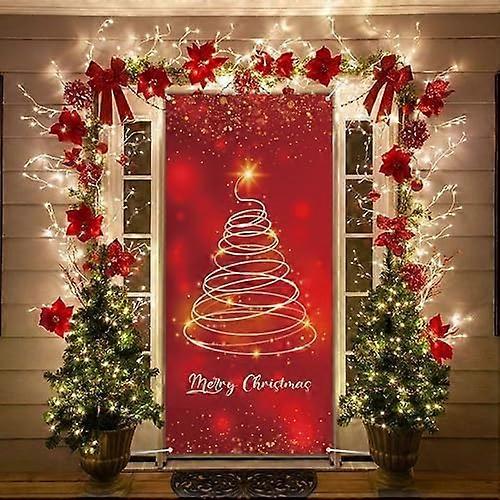 Christmas Door Banner, Christmas Door Cover Banner Decorations with Red Gold Christmas Tree Hanging Banner for Xmas, Winter Party New Year Indoor Outs