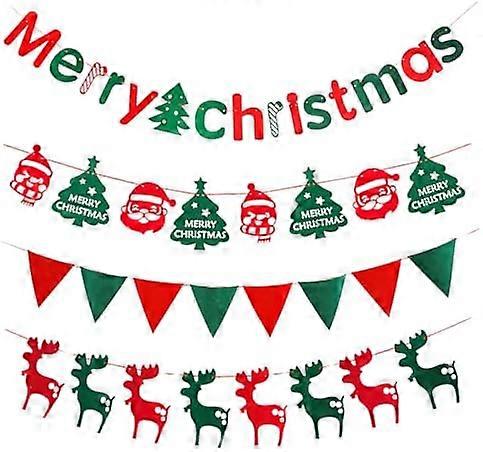 4 Pcs Christmas Buntings Banners, VEGCOO 2.5M Christmas Decorations Merry Christmas Hanging Bunting Garland, Christmas Hanging Banners for Home Office