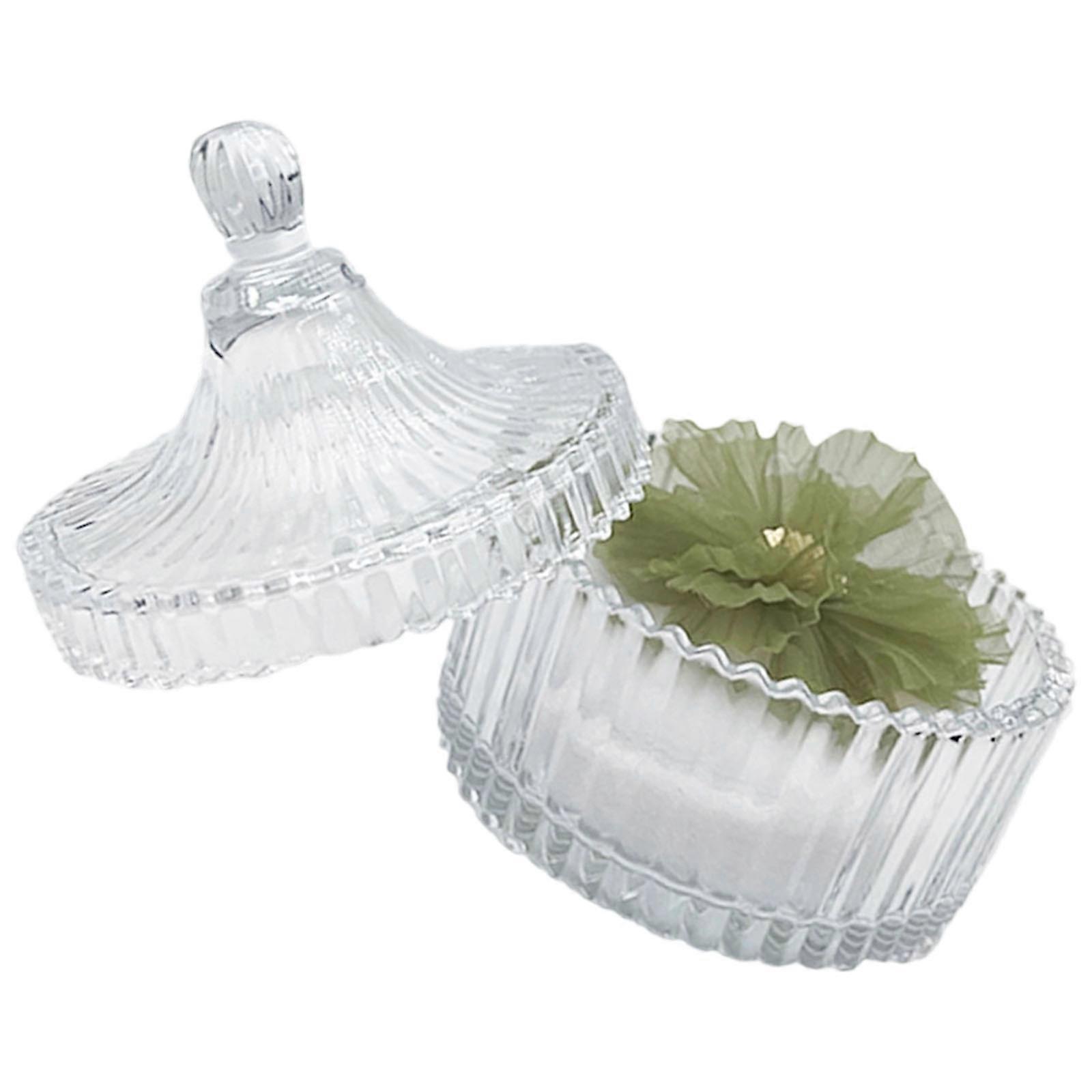 Sumptuousness Polyester Powder Breath Set With Artistic Glass Jar For Face Body Cosmetic Storage And Display White green flowers