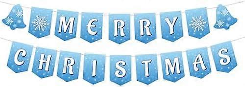 Merry Christmas Banner, Pre-Strung Snowflake Christmas Garland Flags Winter Happy Holiday Decorations for Fireplace Wall Porch Fence Home Office Birth