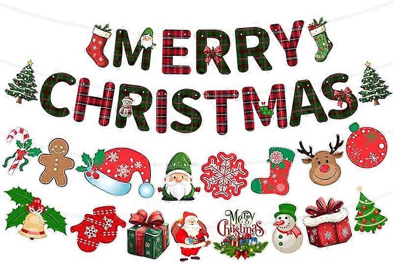 4Pcs Merry Christmas Banner Christmas Decor Hanging Paper Glitter Banner Merry Xmas Garland Bunting for Party Indoor Home Office Fireplace Mantle Farm