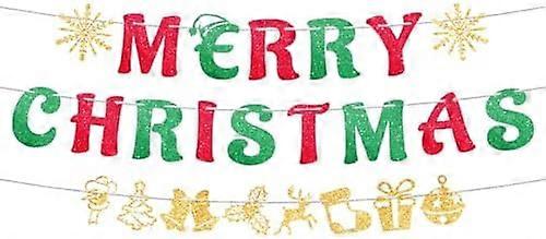 3pcs Pre-Strung Merry Christmas Banner, Glitter Merry Christmas Sign Decorations Shinny Xmas Supplies for Party Holiday Indoor Wall Home Fireplace Dec