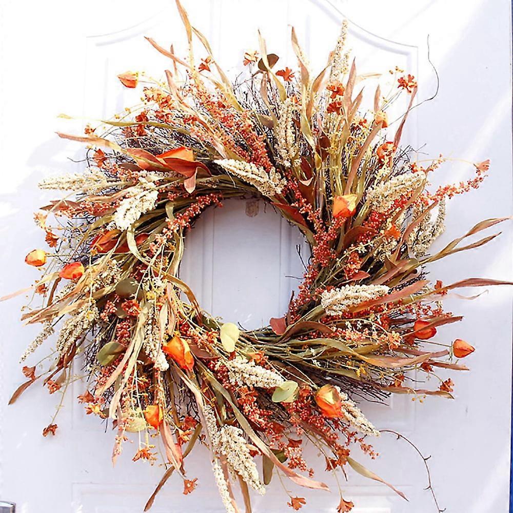 Fall Wreath 24" With Wheat And Straw, Farmhouse Fall Harvest Wreath For Front Door