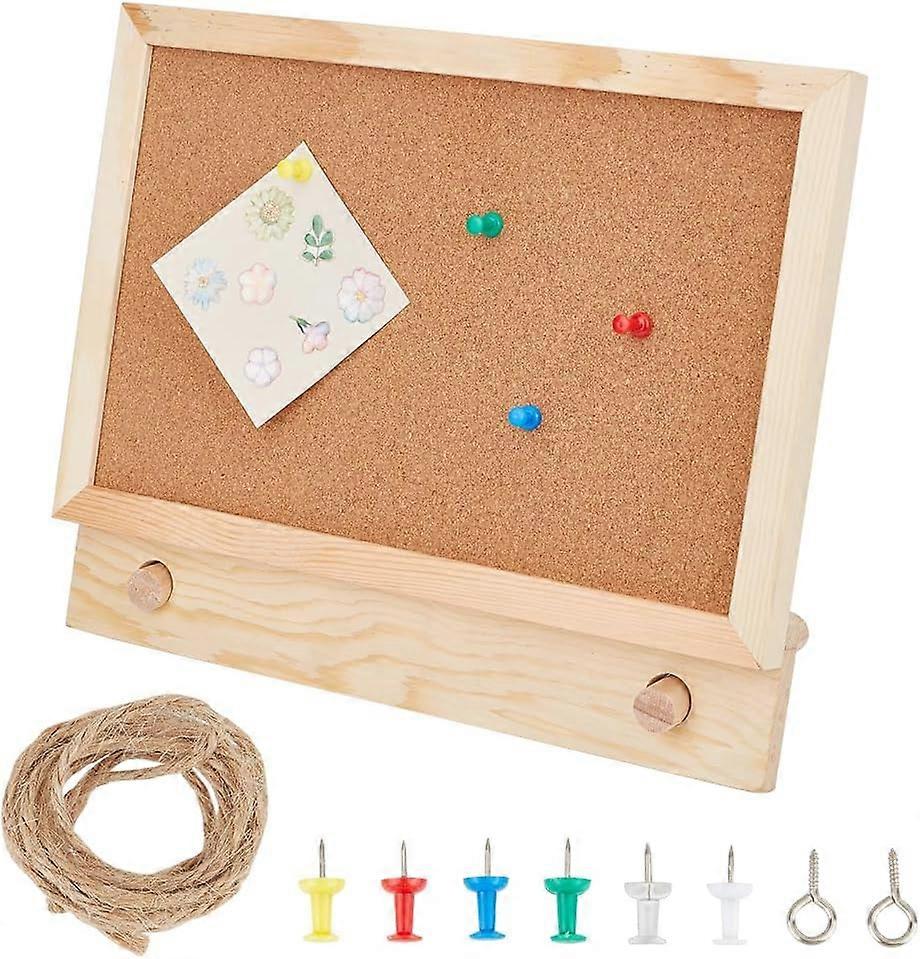 Cork Board with Hemp Rope 2Pcs Wood Sticks 2Pins 6Tacks 9.5x11.7x1.2" for Home Office DIY Decor, Compatible with Thumbtacks