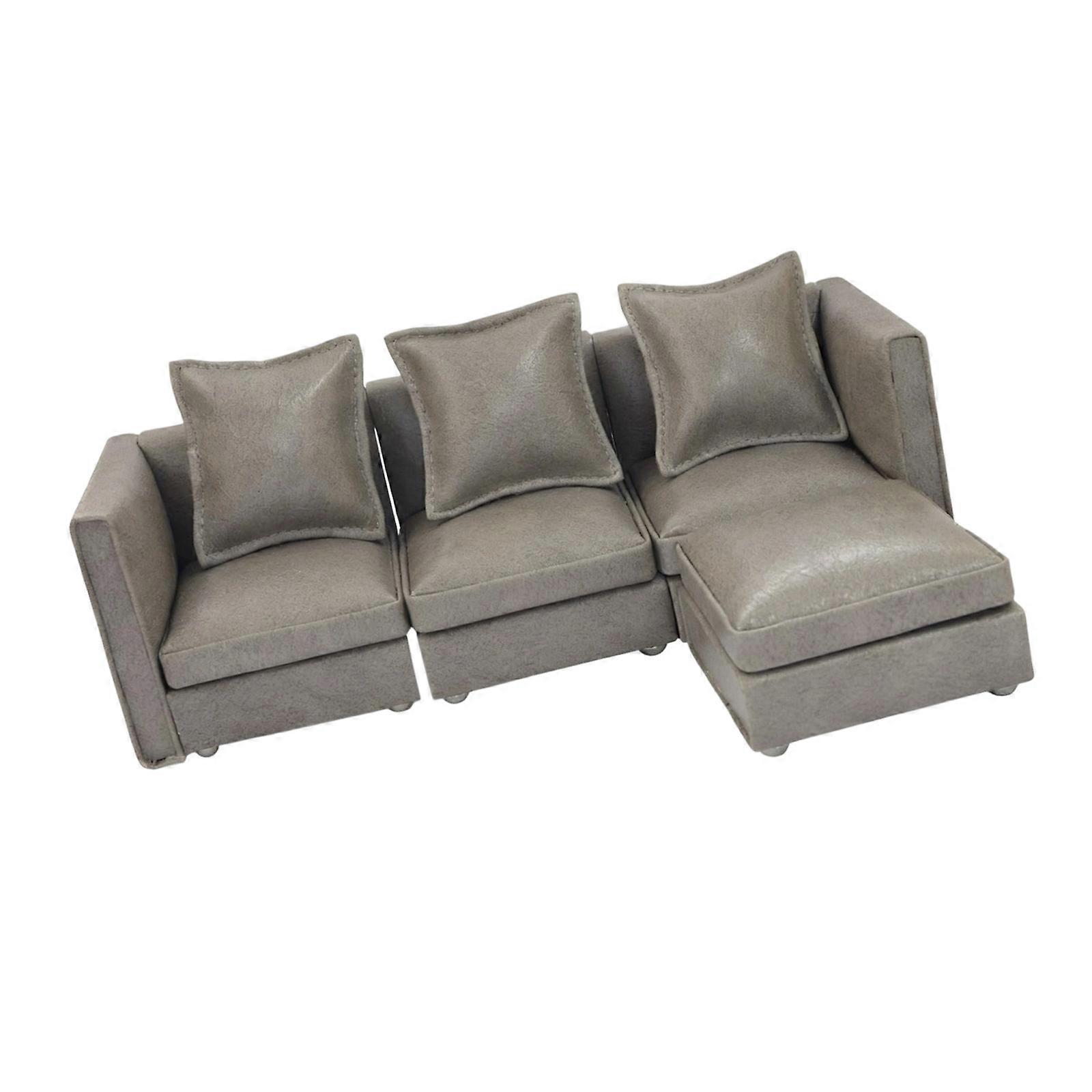 Miniature Dollhouses Furniture Set 1/12 Scale Soft Fabric Living Room Sofa Simple Couch for Realistic Model Displays Gray