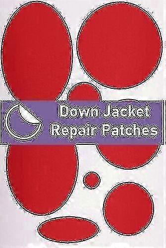 Waterproof Red Soft Down Jacket Patches Pre-cut Self-adhesive Nylon self adhesive repair patches (peel and stick)Self adhesive patchesWater resistantSuitable for Down Jackets, gilets, tents, sleeping bags, etc.It"s really important that you follow the instructions (as per the picture) to make sure you get the best results.Please note: These patches aren"t guaranteed to work on all types of fabric. As you can hopefully appreciate - there are 100"s of types of fabric and this is one type of patch.They"ve worked on my Rab jacket and also a number of test fabrics. The last few pictures show them adhering after 6 months on a sample piece of nylon material.that patch has been in place for over 2 years.However, they do struggle with highly waterproof fabrics (i.e. where the water bubbles on contact with the fabric and doesn"t soak in).The intent of the product is to offer a cheap alternative to replacing a jacket (i.e. ~3 as a fix, rather than 50 - 200 on a new jacket or gilet.My offering is to provide a number of colours for a cheap price and to offer a fix for down jackets. As per the above, this isn"t guaranteed to work on all fabrics, so please sense check whether you think the patch would adhere.Patch sizes:The round sizes are approx:1x 5 cm / 1.96 inches1x 4 cm / 1.57 inches1x 3 cm / 1.18 inches1x 2 cm / 0.78 inch1x 1 cm / 0.39 inch,The oval sizes are approx:1x 6.2 x 4.5 cm / 2.44 x 1.77 inches,1x 5.7 x 3.8 cm / 2.24 x 1.49 inches1x 3.5 x 1.5 cm / 1.37 x 0.59 inch