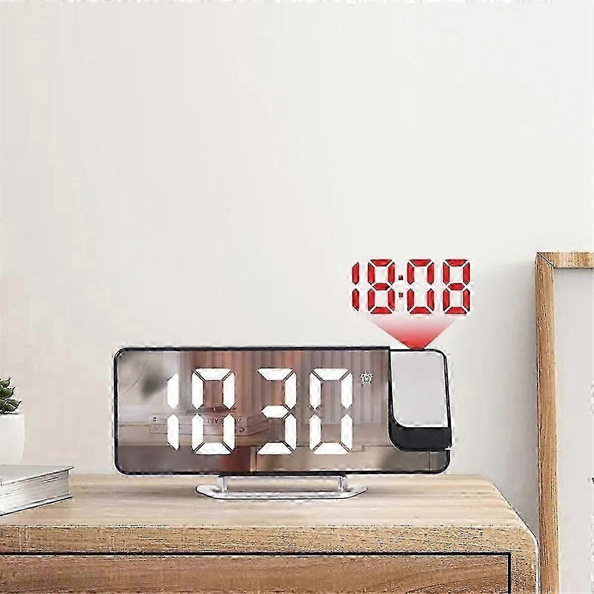 LED Digital Projection Clock Mirror 180 Rotation Large Screen Date Time Temperature Electronic Alarm Clock for Bedroom-A