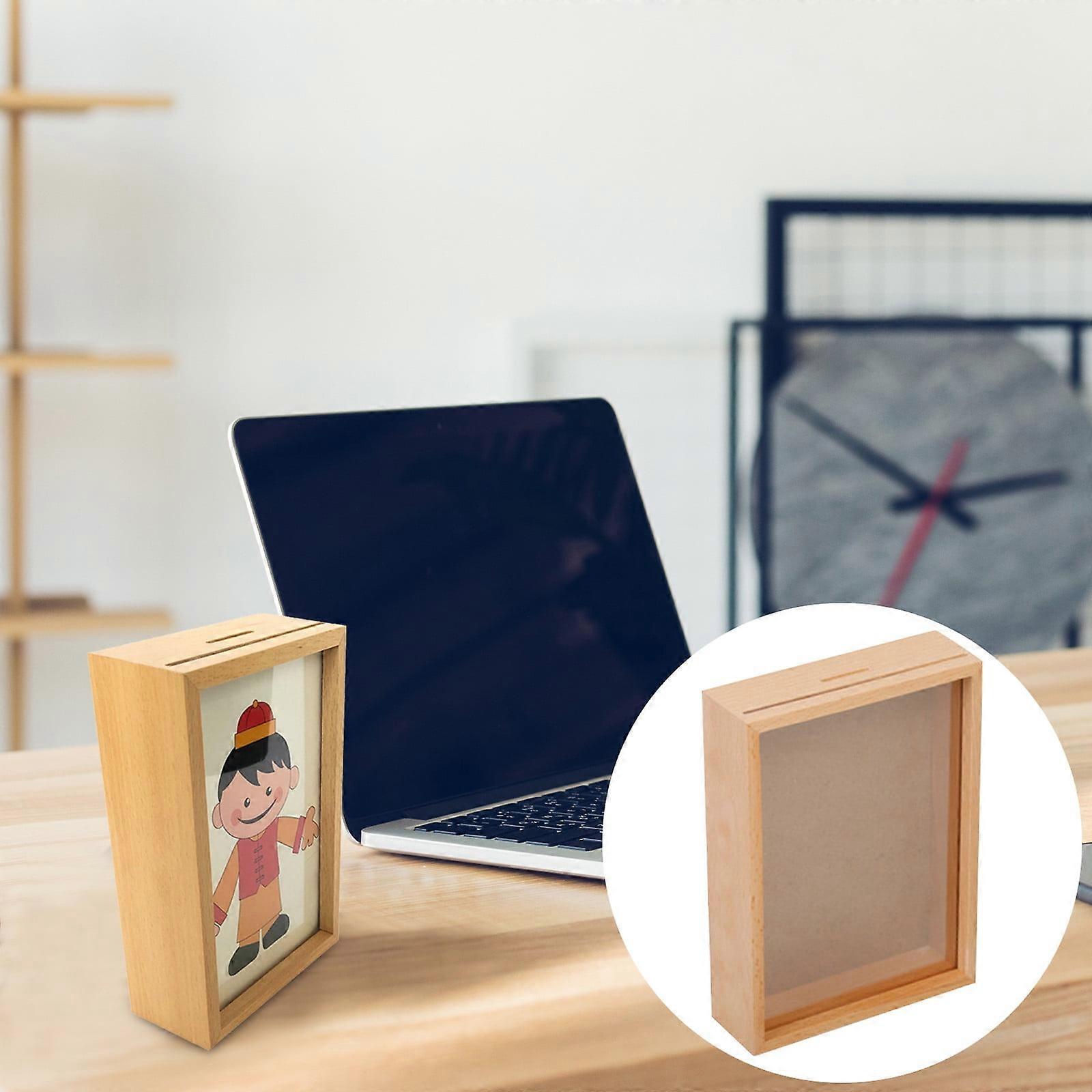 WJSXC Wooden Creative Multifunctional Children's Savings Can Wooden Desktop 6-inch 7-inch Iron Family Album PVC Photo Frame Khaki M